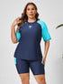 Halcurt Women's Plus Rash Guard Two Piece Swim Shirt