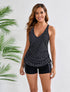 v neck tankini sets tummy control 2 two piece bathing suit swimsuit Ruched drawstring swimsuit with boyshort and pockets swimwear