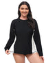 plus size long sleeve swim shirts for women loose fit with built in bra rash guard top swimsuit UPF50+ sun protection quick dry bathing suit