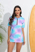 Halcurt Damen-Badeanzug-Top mit halbem Reißverschluss und kurzen Ärmeln (Rashguard)