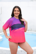 Women's plus size short sleeve loose rash guard swim top, UPF50+ sun protection, quick-dry swimwea