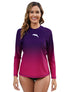 A women’s long sleeve rash guard swim top with built-in bra, UPF50+,High quality breathable fabric, for water activities.