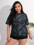 Women's plus size short sleeve loose rash guard swim top, UPF50+ sun protection, quick-dry swimwear