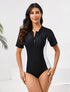 Halcurt Women's Short Sleeve One Piece Rash Guard Swimsuit Zip
